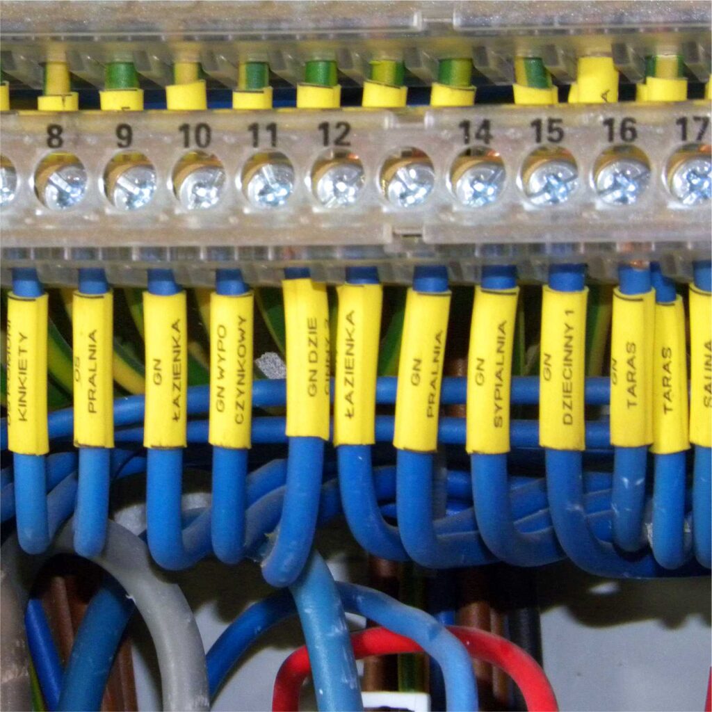 Uzbrajając tablice rozdzielcze oznaczamy i opisujemy wszystkie przewody do niej dochodzące oraz cały zamontowany osprzęt specjalistyczną drukarką.